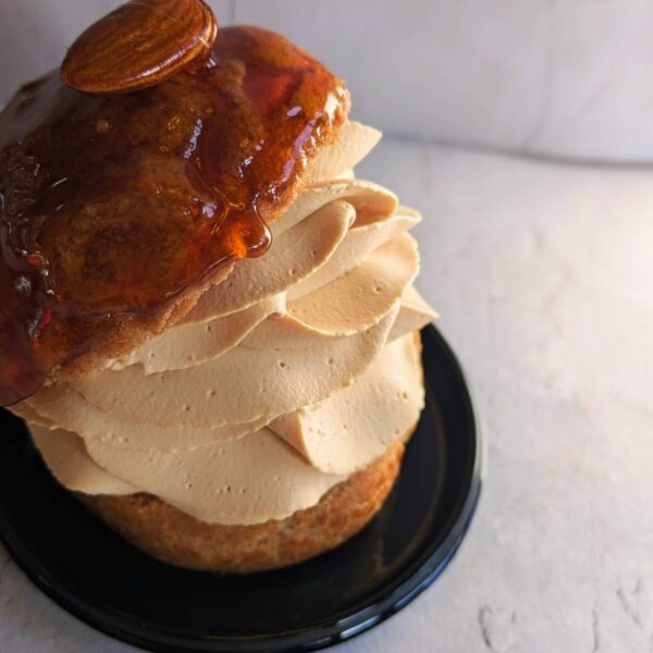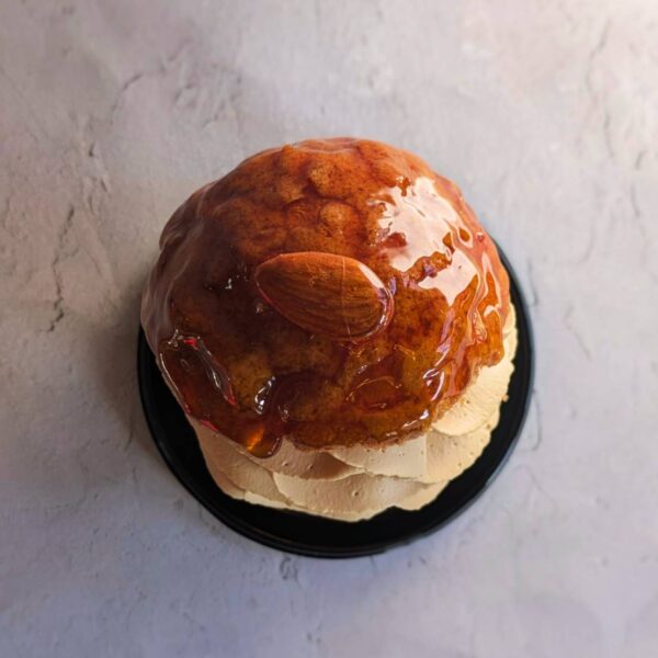 【土日祝限定】カラメロ 760円 ・もりもりキャラメルクリーム ・アーモンドプラリネのガナッシュ ・バニラのクレームダマンド ・シュー生地 ナッツとキャラメルと間違いない組み合わせ。 プラリネはローストから粉砕まで自家製。 とっても香ばしく仕上がってます。 シュー生地にバニラのダマンドを 絞って焼き上げることで ちょっとタルトチックな味わいになってます。 カラメロとはラテン語でキャラメルという意味の由来から。 か プチガトー NEXT